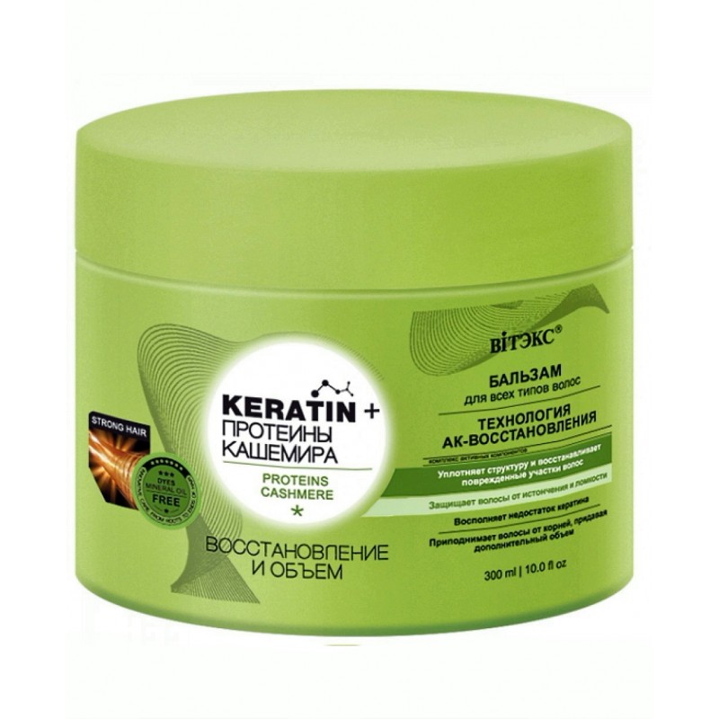 Бальзам для восстановления волос Витекс Ketatin и протеины кашемира Восстановление и объем интенсивно питает и уплотняет структуру волос, восстанавливая поврежденные участки. Придает волосам гладкость и эластичность, облегчает их расчесывание. Благодаря специальной технологии Аминокислотного восстановления шампунь действует сразу в двух направлениях: защищает волосы от истончения и ломкости; приподнимает волосы от корней, придавая им дополнительный объем. Технология АК-восстановления укрепляет волосы, сокращая их ломкость.