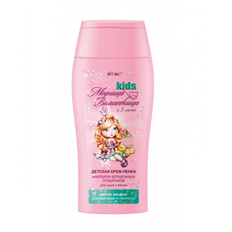 Детская крем-пенка для душа и ванны - секрет маленьких волшебниц для необыкновенной красоты очаровательных модниц. Словно по взмаху волшебной палочки, маленькая модница превращается в настоящую принцессу. Миллион волшебных пузырьков, мерцая и искрясь, создают обильную пышную пену, бережно очищая от макушки до пяток. Супермягкая формула крем-пенки с цветком Эльфов и розовой водой оказывает потрясающее смягчающее и успокаивающее действие на кожу, защищает ее от сухости, не щиплет глазки и не вызывает детских слез. D-пантенол - увлажняет, питает и защищает кожу. А радостный, яркий аромат увлекает маленьких принцесс в чудесную сказку. Удивительно мягкая и нежная кожа, как у самой прекрасной принцессы в мире! Идеально подходит для ежедневного применения. Рекомендуется для модниц-волшебниц с 3-х лет.