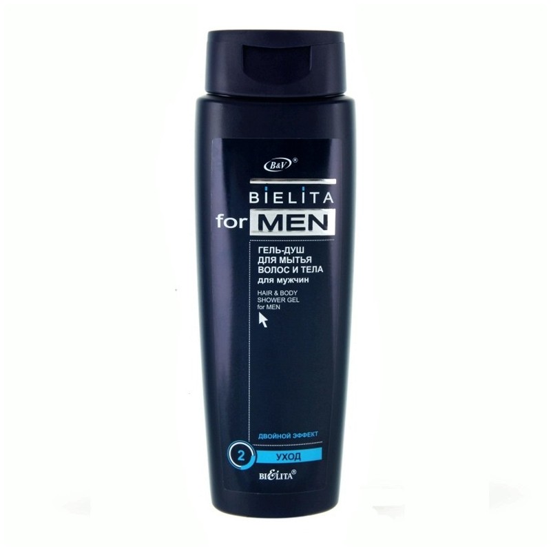 Мужской гель для мытья волос и тела Bielita for men объединяет шампунь и средство для душа в одном флаконе.