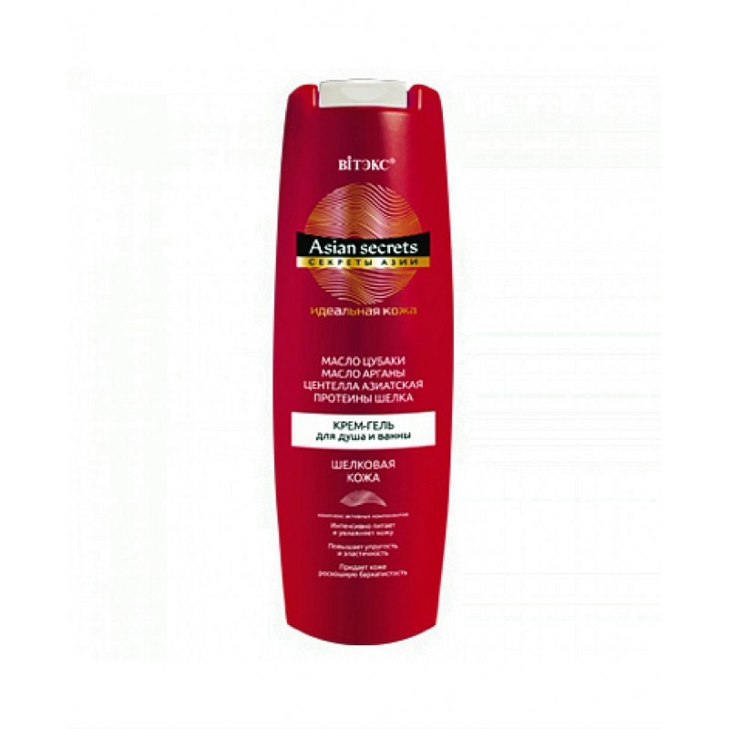 Гель для ванны и душа Витекс Секреты Азии Шелковая кожа эффективно очищает кожу и дарит ей гладкость шелка. Обильная кремообразная пена мягко окутывает кожу, наполняет ее влагой и интенсивно питает, придавая коже нежность и роскошную бархатистость. Крем-гель обладает изысканным ароматом. Подходит в качестве геля для душа и пены для ванн. МАСЛО ЦУБАКИ - древний японский секрет красоты - богато витаминами A, В и Е, ненасыщенными жирами, коллагеном и антиоксидантами, активно питает и увлажняет кожу, повышая ее тонус. МАСЛО АРГАНЫ насыщает кожу необходимыми питательными веществами, устраняет ощущение сухости и стянутости, придает коже роскошную бархатистость и нежность. ЦЕНТЕЛЛА АЗИАТСКАЯ с давних времён известна в восточной медицине и косметологии как ценнейший ингредиент, ускоряет регенерацию клеток, наполняет кожу влагой, придает коже упругий, свежий, подтянутый вид. ПРОТЕИНЫ ШЕЛКА улучшают эластичность кожи, возвращают ей шелковистую мягкость и гладкость.