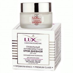 Глобальный антивозрастной крем дневной для лица Самоомоложение Lux Care предназначен для глобального уменьшения всех визуальных признаков старения: мимических морщинок, морщин, появления тусклости и сухости кожи. Помогает ревитализировать кожу, заметно повышает ее упругость и эластичность.
