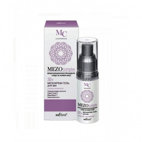Белита Мезокрем для век Глубокое увлажнение Mezocomplex восстанавливает оптимальный уровень увлажненности кожи век, разглаживает морщины вокруг глаз, уменьшает припухлости и темные круги под глазами. Optim Hyal стимулирует синтез гиалуроновой кислоты, восстанавливает ее оптимальный баланс, повышает увлажненность кожи, увеличивает ее эластичность, плотность и упругость, уменьшает несовершенства и разглаживает морщины. Beautifey подтягивает кожу век, сокращает морщинки вокруг глаз, уменьшает припухлости и темные круги под глазами. Высокомолекулярная гиалуроновая кислота глубоко увлажняет кожу и удерживает влагу на поверхности, повышает эластичность кожи, разглаживает морщины и выравнивает тон. Коктейль из аминокислот (таурин, глицин, аргинин) наполняет клетки кожи энергией и жизненной силой, способствует клеточной регенерации. LPD’s Multivitamin (витамины A, C, E, F) ускоряет процесс обновления клеток, стимулирует синтез коллагена и сокращает морщины. Polylift обеспечивает эффект лифтинга, придает коже упругость, выравнивает микрорельеф.