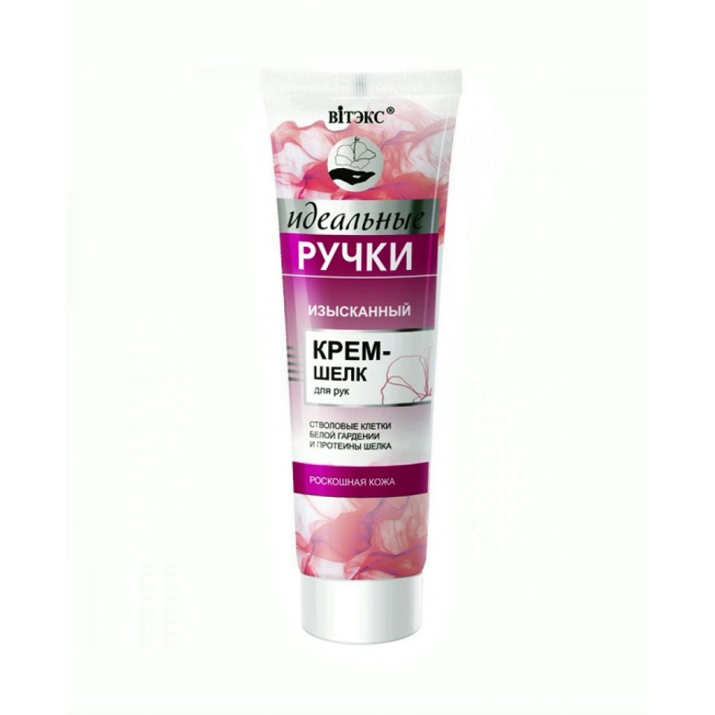 Крем для рук Идеальные ручки Витекс с протеинами шелка на основе стволовых клеток белой гардении и протеинов шёлка обеспечивает роскошный уход и заботу о коже рук, придавая ей невероятную нежность и бархатистость. Стволовые клетки гардении, богатые фитостеролами, аминокислотами и полисахаридами, обеспечивают многоуровневую защиту структуры коллагена, предотвращают его разрушение и активизируют механизмы обновления кожи. Протеины шелка глубоко увлажняют кожу, питают, способствуют заживлению микротрещинок. Образуют на коже легкую мантию, придающую шелковистую гладкость коже рук. Благодаря действию активных компонентов кожа становится потрясающе нежной и мягкой.