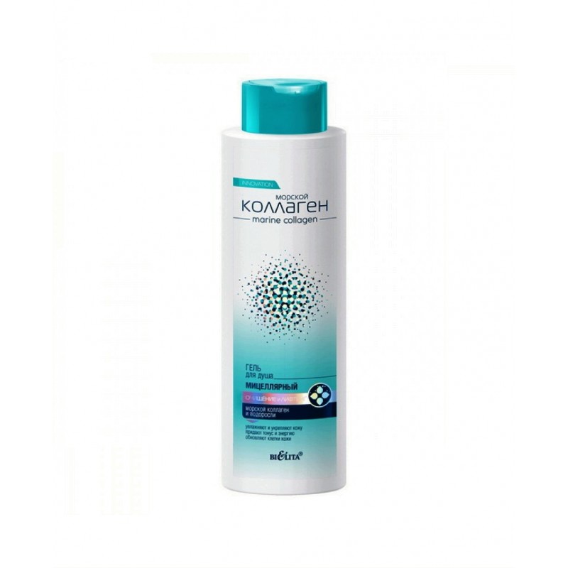 Мицеллярный гель для душа Морской коллаген Очищение и Лифтинг Белита прекрасно очищает и обновляет кожу, делает ее мягкой, упругой и эластичной. Специальные мицеллы, словно магнит, притягивают загрязнения и ороговевшие клетки кожи. Комплекс активных компонентов: увлажняет, укрепляет и подтягивает кожу придает тонус и энергию обновляет клетки кожи Активные компоненты: морской коллаген, бурые водоросли, кофеин, D-пантенол.