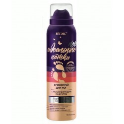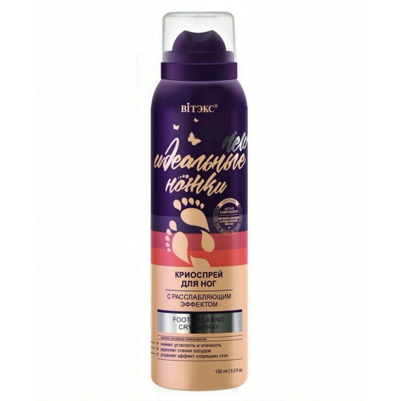 Спрей для ног Идеальные ножки Витекс с расслабляющим эффектом - необходимое средство при длительных прогулках, во время занятия спорта, после тяжелого, напряженного дня, когда ноги нуждаются в расслаблении. Особые компоненты мгновенно освежают, охлаждают и дезодорируют кожу ног, снимая эффект «горящих» стоп, дарят ощущение легкости ногам, избавляя от усталости. Экстракты каштана и гинкго билоба стимулируют микроциркуляцию крови, улучшают эластичность стенок сосудов, уменьшают отечность. Ментол быстро охлаждает, эффективно избавляет от ощущения «тяжелых» ног, снимает напряженность и усталость после тяжелого дня. Криоспрей возвращает ощущение полного комфорта коже ног.