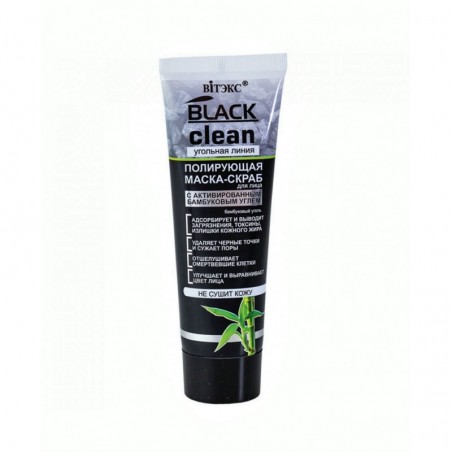 Угольная маска для лица Black Clean Витекс адсорбирует и выводит загрязнения, токсины, излишки кожного жира, удаляет черные точки и сужает поры отшелушивает омертвевшие клетки, улучшает и выравнивает цвет лица. Полирующая маска-скраб с активированным углем адсорбирует и выводит загрязнения и токсины, излишки кожного жира, способствует сужению пор и сокращению количества черных точек, улучшает и выравнивает цвет лица. Скрабирующие частицы отшелушивают омертвевшие клетки, бережно очищая кожу. Не сушит кожу.