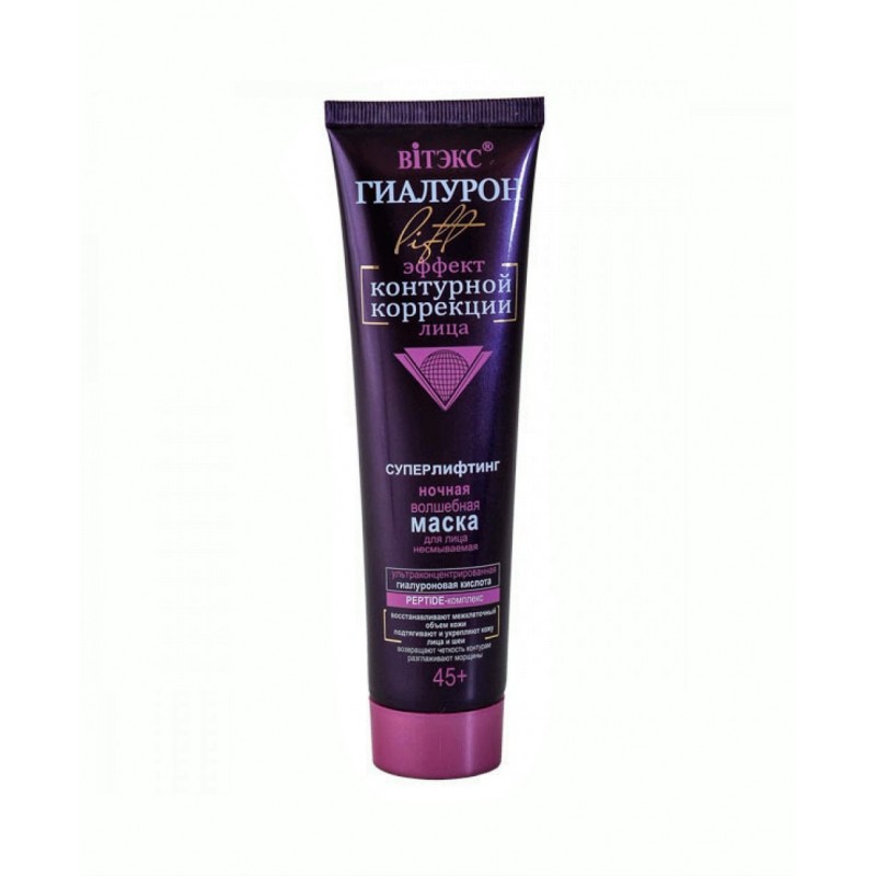 Маска с гиалуроновой кислотой для лица Витекс Гиалурон эффект контурной коррекции лица с эффектом лифтинга ночная несмываемая 45+ 100 мл