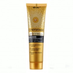 Ревитализирующая маска для лица Витекс Суперпитание Аргана и миндаль интенсивно питает и смягчает, глубоко очищает и освежает кожу, делает кожу гладкой и яркой. Активная маска нежной кремовой текстуры насыщена маслами арганы и сладкого миндаля, которые интенсивно питают клетки кожи, восстанавливают эпидермальный барьер, оказывают успокаивающее и ревитализирующее действие, помогают замедлить процессы старения. Белая глина глубоко и бережно очищает и освежает кожу, улучшает цвет лица, делает его овал более чётким. Грязь Мертвого моря насыщает клетки уникальными минералами и микроэлементами, повышает упругость и эластичность кожи. После применения маски кожа становится необыкновенно гладкой, свежей, обновленной и яркой.