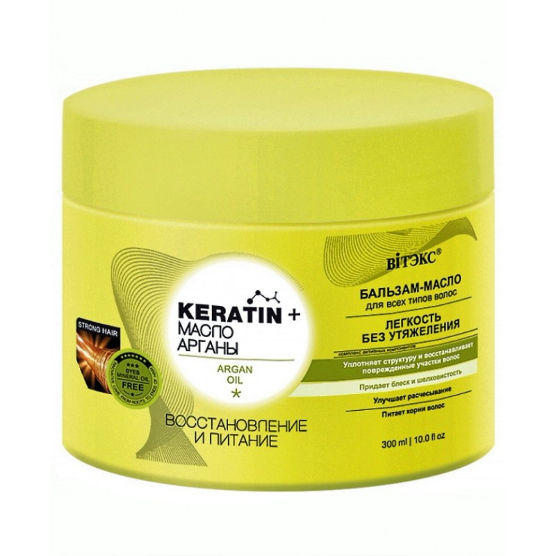 Маска для волос с маслом арганы Витекс Ketatin и масло арганы для всех типов волос Восстановление и питание глубоко питает волосы, уплотняет структуру и восстанавливает поврежденные участки волос, придает блеск и шелковистость, не утяжеляя волосы.