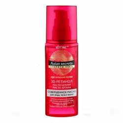 Масло для волос и кожи Секреты Азии Витекс разработано для совершенного ухода за кожей и волосами. Имеет легкую текстуру, мгновенно впитывается и не оставляет жирного блеска. Придает коже упругость и эластичность, делая ее нежной и сияющей, а волосам - гладкость и шелковистость. Комплекс активных компонентов интенсивно питает и увлажняет кожу, устраняет ощущение сухости и стянутости, стимулирует обновление клеток, обеспечивает лифтинг-эффект и разглаживает морщины, выравнивает тон кожи, возвращая коже роскошную гладкость, мягкость и нежность. Восстанавливает и разглаживает структуру волос, предупреждает появление секущихся кончиков, дарит волосам блеск и сияние. 3D-РЕТИНОЛ стимулирует обновление клеток, обеспечивает лифтинг-эффект и разглаживает морщины, выравнивает тон кожи. МАСЛО ЦУБАКИ - богато витаминами A, В и Е, ненасыщенными жирами, коллагеном и антиоксидантами, интенсивно питает и увлажняет кожу, предупреждает появление морщин и повышает тонус кожи, восстанавливает и разглаживает структуру волос, придавая им гладкость и сияние. МАСЛО АРГАНЫ насыщает кожу необходимыми питательными веществами, устраняет ощущение сухости и стянутости, придает коже роскошную гладкость, мягкость и нежность, повышает упругость и эластичность волос, предупреждая появление секущихся кончиков.