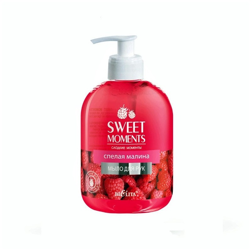 Жидкое мыло для рук Спелая малина с дозатором Sweet Moments Белита деликатно очищает кожу рук, не повреждая и не пересушивая ее при частом применении. Специальная ухаживающая формула на основе экстракта дыни насыщает кожу влагой и питательными элементами, делает ее мягкой, необыкновенно нежной и придает коже пленительный аромат. Глицерин поддерживает естественную влажность кожи, делая её гладкой и шелковистой.