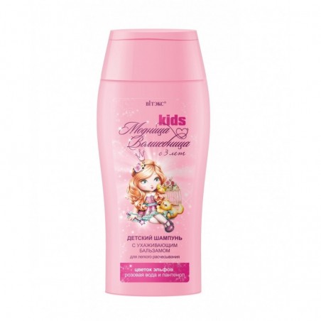 Детский шампунь с ухаживающим бальзамом - секрет маленьких волшебниц для необыкновенной красоты и здоровья волос. Словно по взмаху волшебной палочки, маленькая модница превращается в настоящую принцессу. Волшебный шампунь с цветком Эльфов и розовой водой мягко очищает, увлажняет и укрепляет нежные детские волосы от корней до кончиков волос, не сушит волосы и чувствительную кожу головы, способствует укреплению и росту волос. D-пантенол питает и защищает волосы, придавая волосам блеск и шелковистость. Ухаживающий бальзам облегчает расчесывание даже самых длинных и густых волос, делает их более послушными. А радостный, яркий аромат увлекает маленьких принцесс в чудесную сказку и мир волшебных перевоплощений. Удивительно красивые и сияющие волосы, как у самой прекрасной принцессы в мире! Супермягкая щадящая формула шампуня без красителей с нейтральным уровнем рН не щиплет глазки и не вызывает детских слез. Идеально подходит для ежедневного применения.