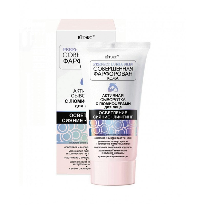 Витекс Совершенная фарфоровая кожа, Сыворотка с люмисферами для лица для осветления и лифтинга