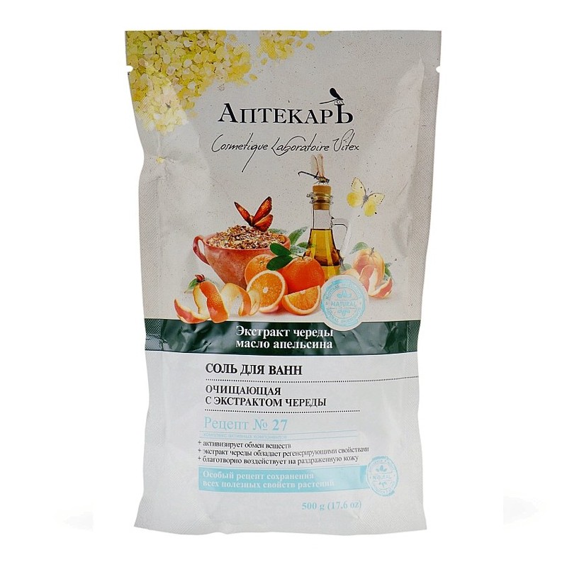 Морская соль для ванны Витекс Аптекарь Очищающая с экстрактом череды 500 г